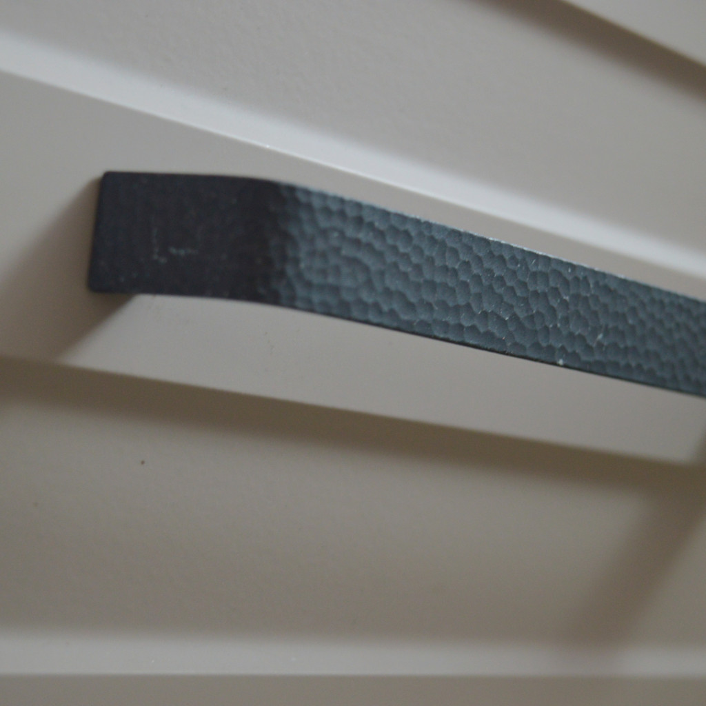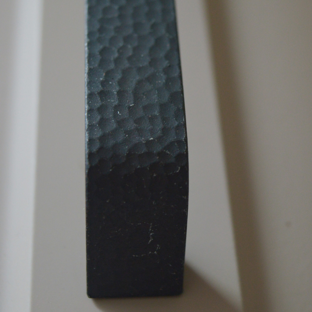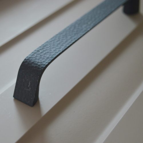 Autentikus megjelenésű, antikolt fekete fém bútorfogantyú, amely elegáns, karakteres hangulatot ad a bútoroknak.
