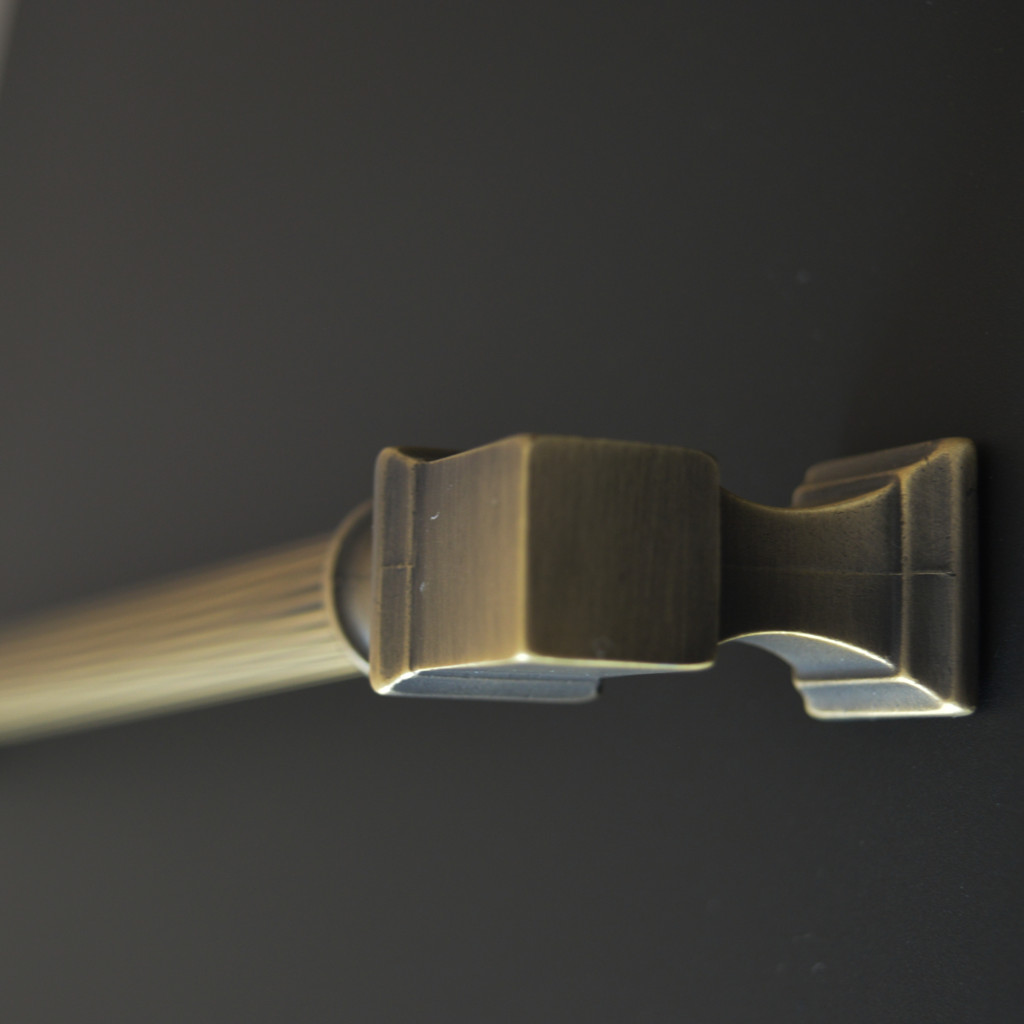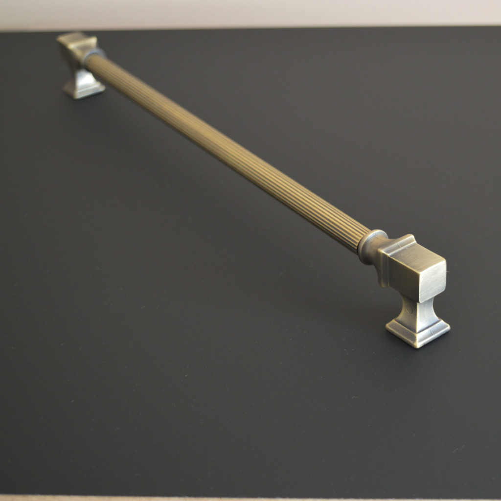 Bronz színű, fém bútorfogantyú. Szekrények, komódok kiegészítőjeként tökéletesen beleillik egy indusztriális stílusú otthoni környezetbe.
