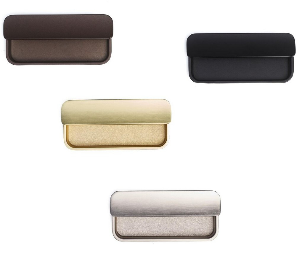 Púder színű besüllyeszthető fém bútorfogantyú, mely szekrények, komódok, konyhák kiegészítőjeként tökéletesen beleillik egy otthoni környezetbe.