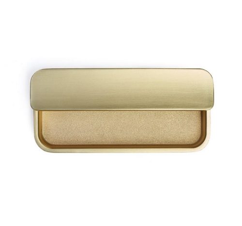 Matt arany színű besüllyeszthető fém bútorfogantyú, mely szekrények, komódok, konyhák kiegészítőjeként tökéletesen beleillik egy otthoni környezetbe.