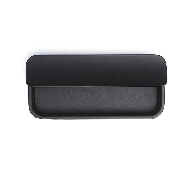 Matt fekete színű besüllyeszthető fém bútorfogantyú, mely szekrények, komódok, konyhák kiegészítőjeként tökéletesen beleillik egy otthoni környezetbe.