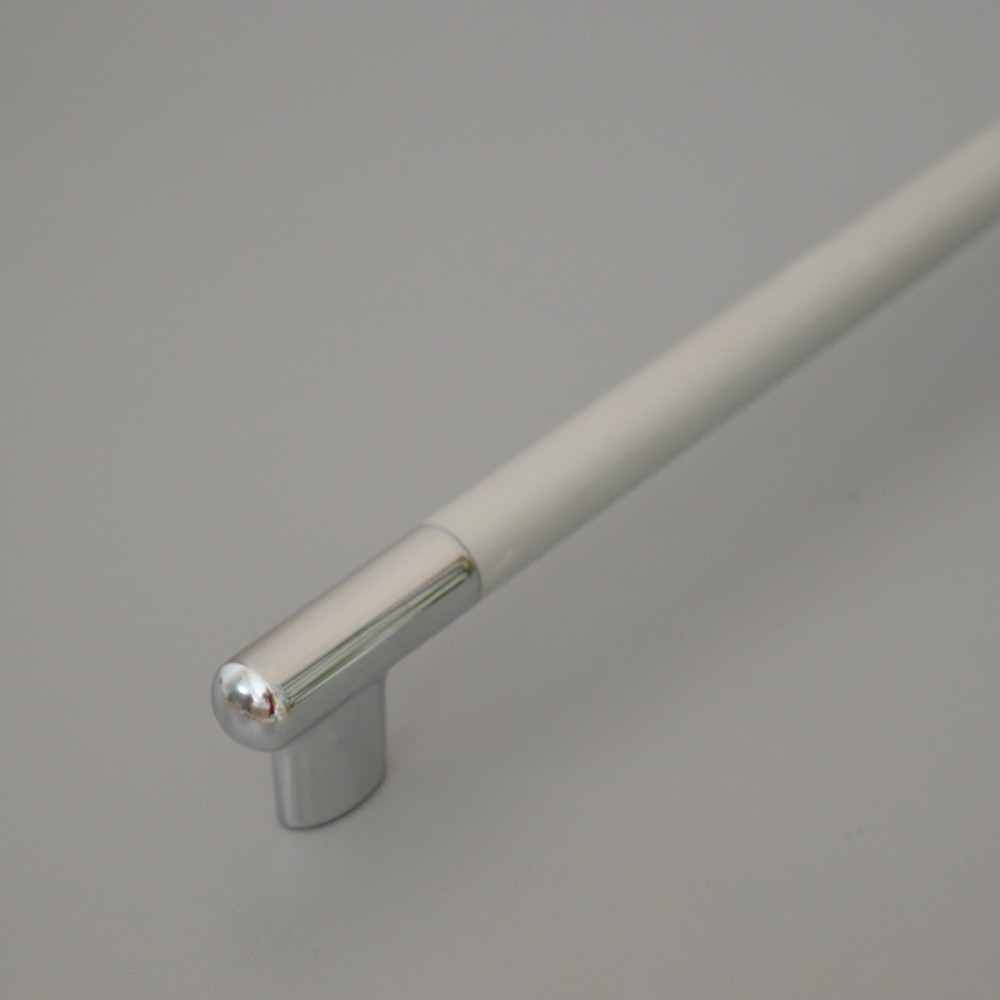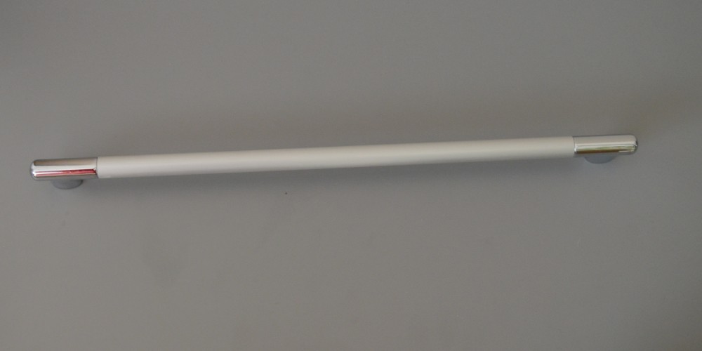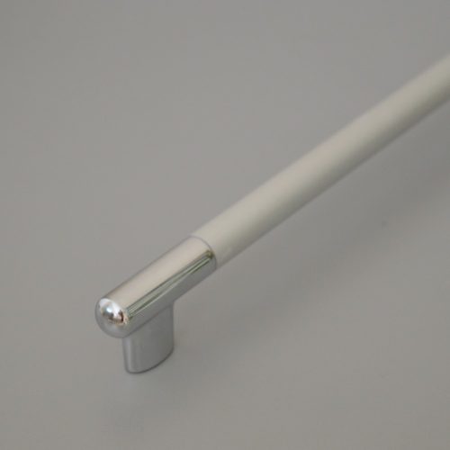 Gardróbszekrények, hosszú konyhai fiókok tökéletes kiegészítője ez a matt króm - fényes króm kombinált színű fogantyú.