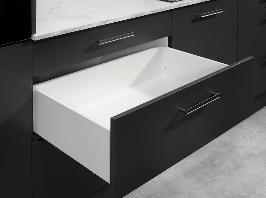 A Matrix S+ fiók kiváló minőségű alkatrészekből készül, vezetősínei pedig biztosítják a halk és gördülékeny nyitást-zárást, ami kényelmes használatot eredményez.