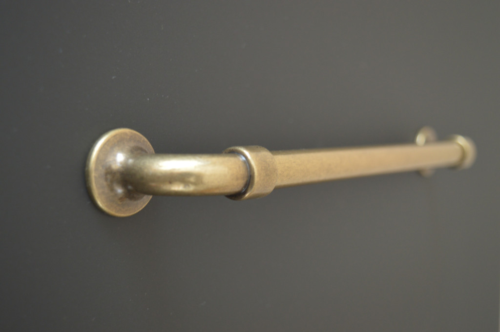 Bronzefarbene Metallgriffe für Möbel. Als Ergänzung zu Schränken und Kommoden passen sie perfekt in eine Wohnumgebung im industriellen Stil.