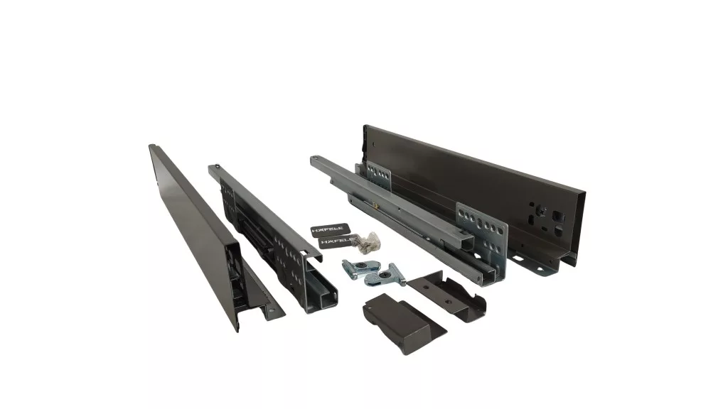 Teljes kihúzású, önbehúzós rendszerrel. 16 mm bútorlap szükséges az összeállításhoz